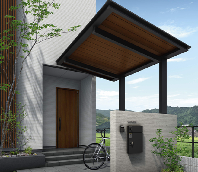 - 高度な外構を提供できます。耐久性に優れた天然石や美観と機能性を兼ね備えたウッドデッキ材、高度な技術を駆使した高性能のエクステリア製品など多岐にわたる素材を駆使した外構が可能です。